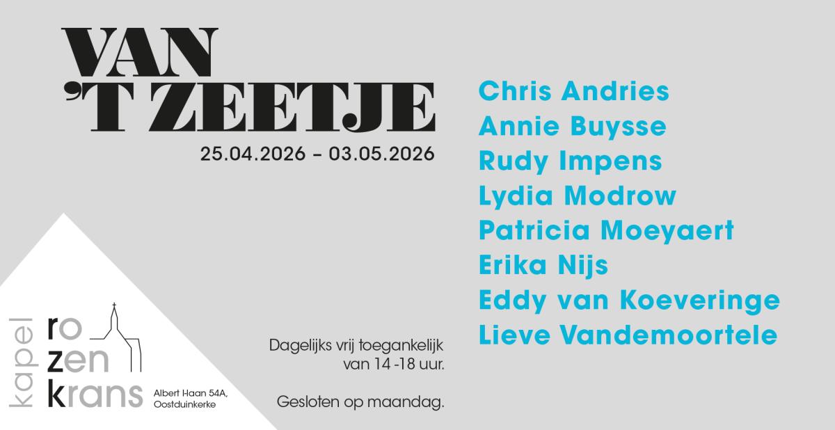 De titel ‘Van ’t Zeetje’ zegt het al: niet alleen in de kunstwerken speelt de zee een hoofdrol, ook de deelnemende kunstenaars wonen en werken in Koksijde en Oostduinkerke, vlakbij de zee die hen inspireert.