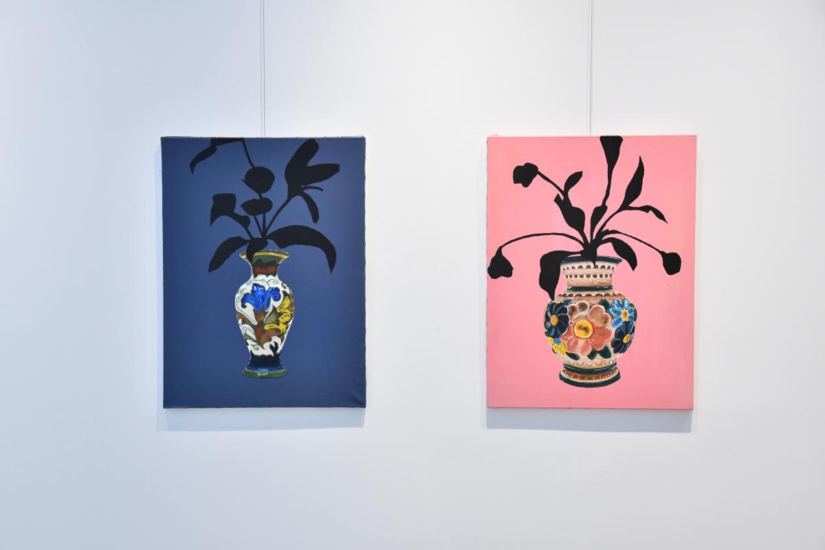 Pieter: "De titel verwijst naar het spanningsveld tussen herinnering en vergankelijkheid. Het 1e woord betekent verwelken, maar ook transformeren. Net zoals bloemen verwelken en een nieuwe vorm aannemen, veranderen herinneringen doorheen de tijd. In mijn werk probeer ik dat proces zichtbaar te maken: het bewaren én het vervagen van wat was. De schilderijen tonen vazen, bloemen en objecten. Ze verwijzen naar verlies, maar ook naar veerkracht en schoonheid." Er zit altijd een zekere zachtheid in mijn beelden, soms zelfs een glimlach. Voor mij is Wilting Memories geen droevig thema, maar een ode aan de kwetsbaarheid van herinneringen – en dat we ze telkens kunnen herschrijven.