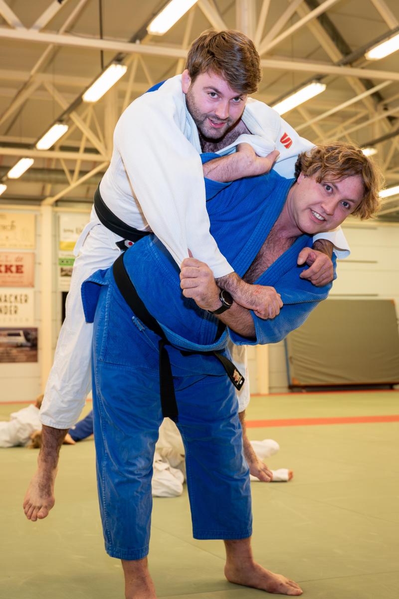 Jelle: "De nadruk ligt op werp- en greeptechnieken. Je gebruikt de kracht van je tegenstander om hem (of haar) uit balans te brengen en onder controle te houden – op de grond. Niet zoals bijvoorbeeld karate, dat is vooral met stoten en trappen. Judo focust op de combinatie van staande skills (worpen) en grondtechnieken (houdgrepen, verwurgingen, klemmen). Heel veelzijdig."
