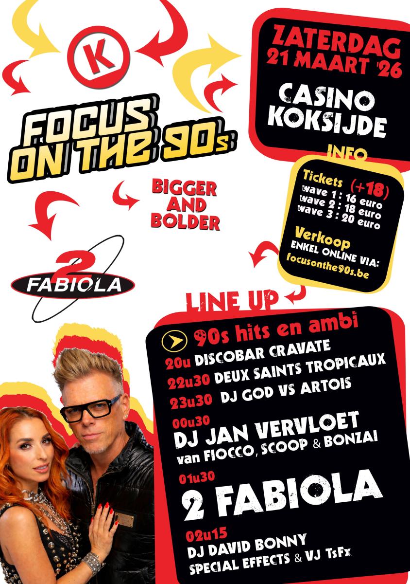 Zet zaterdag 21 maart in je agenda. Dan keert Focus on the 90s terug naar cultuurcentrum CasinoKoksijde.