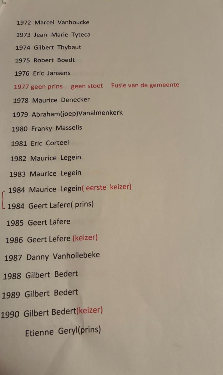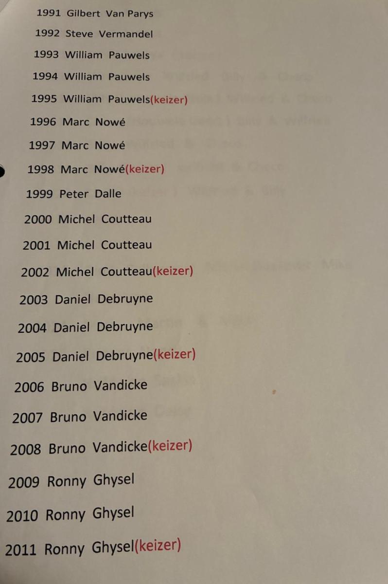 Maurice: “Tientallen. Misschien nog eentje: op de hoed van de prins zie je 3 veren. 2 van die pluimen kregen we via de Orde van de Hoge Blekker, de carnavalistenvereniging van Koksijde. Die veren kostten veel – toen 1.000 Belgische frank - en plots stopten (de inmiddels overleden, red.) Hilda en Gilbert ons geld toe waarmee me die 3e veer konden aankopen. Mooi, toch?”