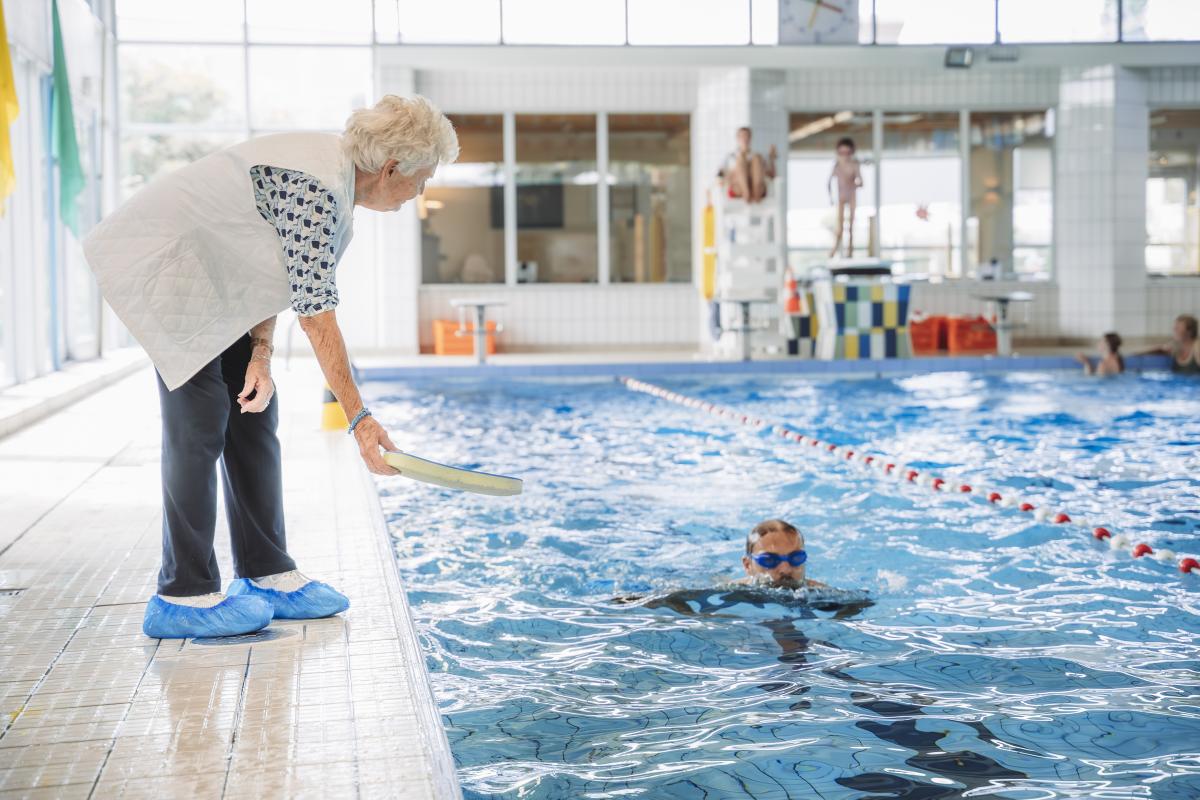 Odette: "Natuurlijk de muurkant. Daar sta ik dichtbij 'mijn' zwemmers en maak je sneller contact. Vooral voor de jongste zwemmers geeft dat trouwens een gevoel van veiligheid."