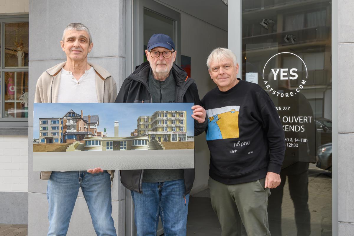 Op de foto staat, naast Freddy Penel en Henri Sarla, Patrick Mortier van YesArtStore in Sint-Idesbald. (Beeld: W.Carels)