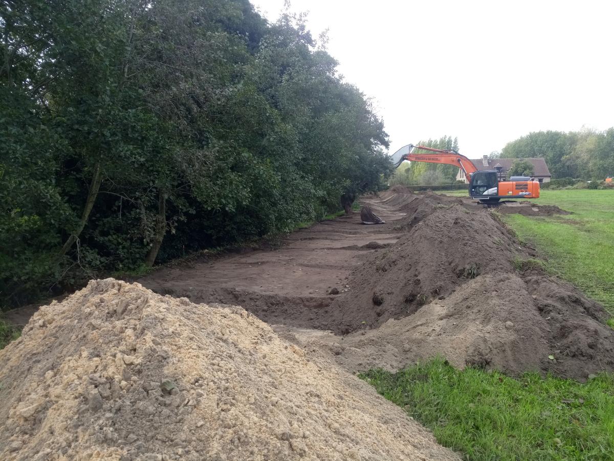 Achter de Sint-Niklaaskerk graven machines de grond af. 60 centimeter diep. Op een oppervlakte van 2,5 hectare.
