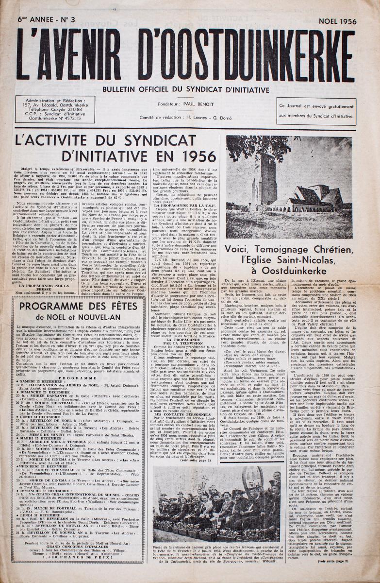 In december 1951 werd opnieuw een eerste jaargang nr 1 uitgegeven van l’ Avenir d’Oostduinkerke/De toekomst van Oostduinkerke, het ‘officieel bulletin van de vereniging voor vreemdelingenverkeer (VVV)’.