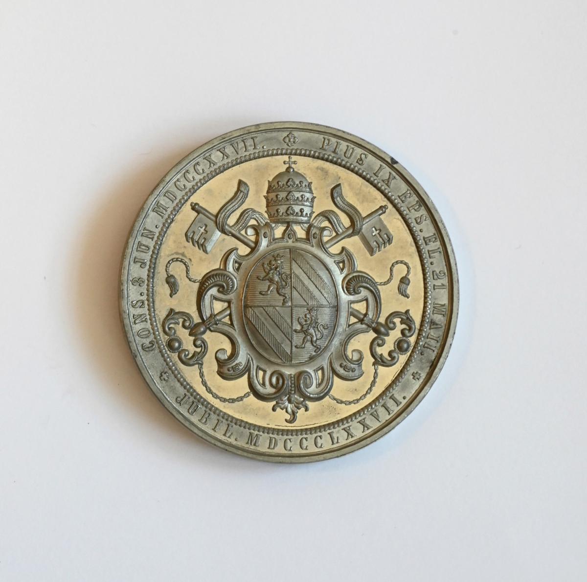 Die tiara was veel meer dan een mooi object. Ze stond symbool voor pauselijke macht en waardigheid. Dat zie je ook op het pauselijk wapenschild, waar de tiara eeuwenlang een vaste plaats kreeg. Ook op de penning (zie foto) duikt dat sterke symbool op.