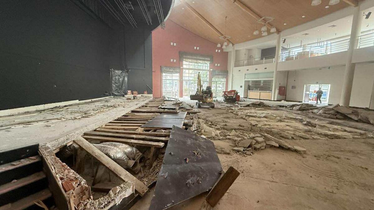 In en rondom het cultuurcentrum wordt er hard doorgewerkt aan de renovatie.