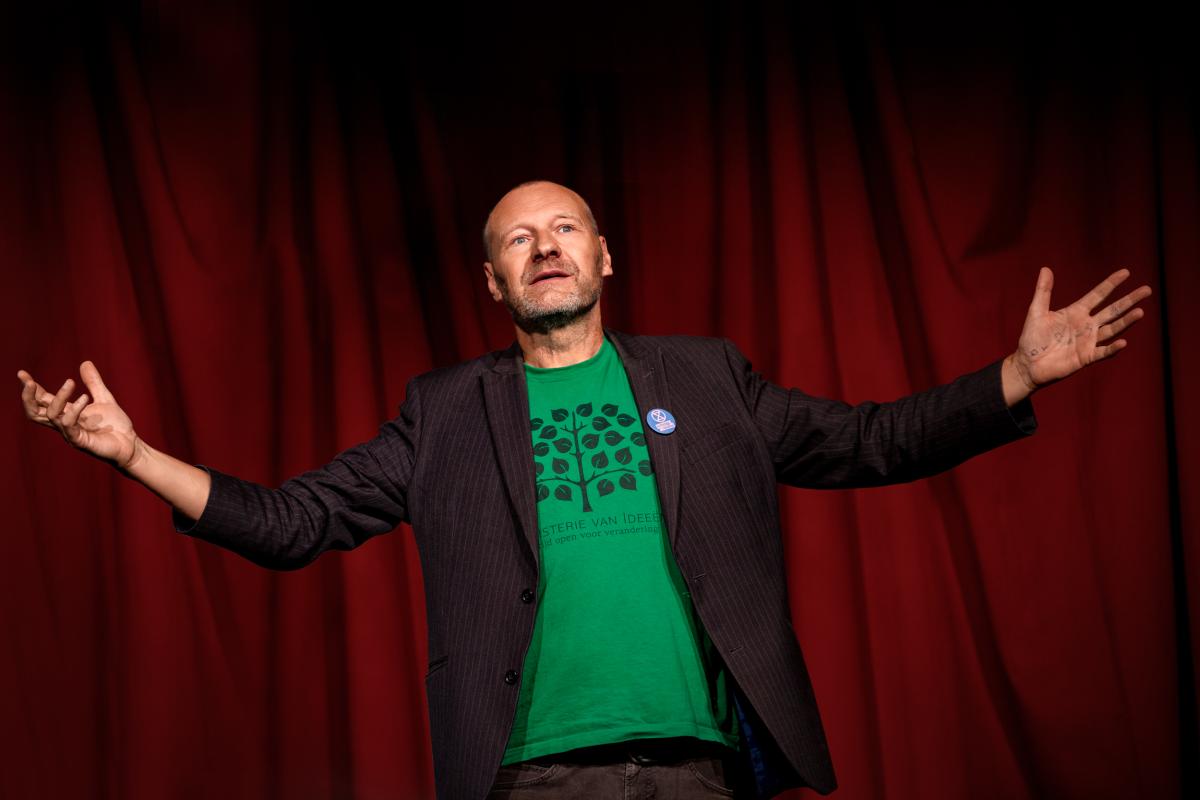 Verwacht je aan een eco-comedyshow vol scherpe observaties en creatieve ideeën over hoe we de wereld op de rand brengen.