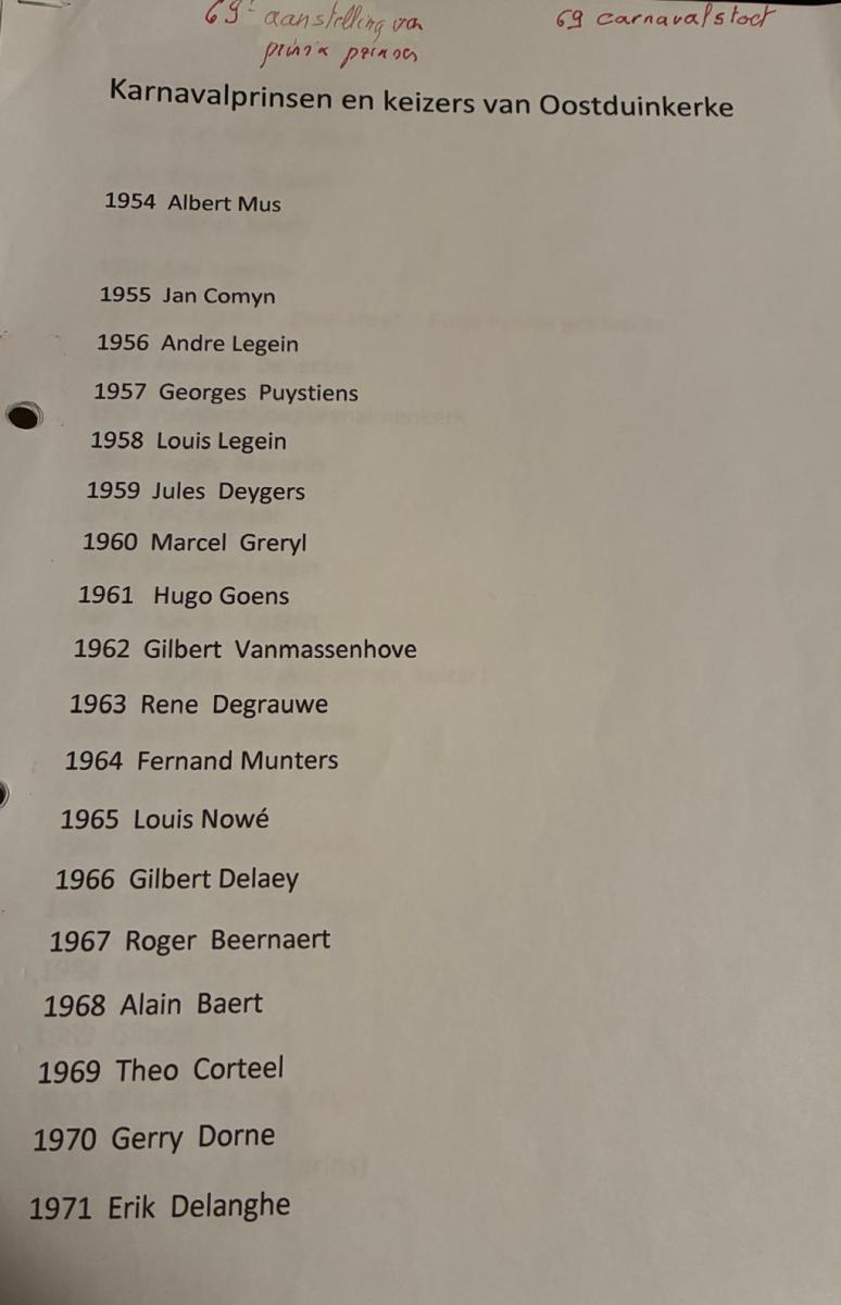 Maurice: “Tientallen. Misschien nog eentje: op de hoed van de prins zie je 3 veren. 2 van die pluimen kregen we via de Orde van de Hoge Blekker, de carnavalistenvereniging van Koksijde. Die veren kostten veel – toen 1.000 Belgische frank - en plots stopten (de inmiddels overleden, red.) Hilda en Gilbert ons geld toe waarmee me die 3e veer konden aankopen. Mooi, toch?”