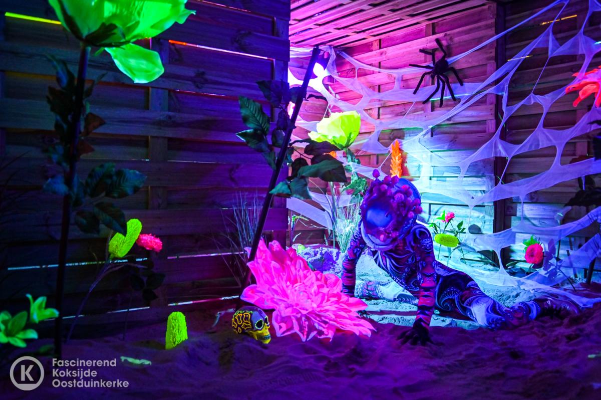 Wie het Halloweendoolhof op het strand van Sint-Idesbald heeft betreden, waagde zich aan ontmoetingen met de meest duistere creaturen uit de zee. Piratenskeletten, slangenkooien en octopustentakels. Het doolhof was voor het eerst twee weken open voor publiek en je kon kiezen tussen dag- en avondsessies. In totaal zochten 11.000 nieuwsgierigen de uitgang van het griezelige doolhof!