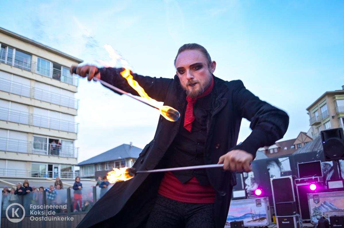Sint-Idesbald on fire! Het was griezelig genieten van de talloze impressionante vuuracts en een verbluffend slotvuurwerk. Het publiek vond duidelijk de weg naar Sint-Idesbald want maar liefst 15.000 toeschouwers gaven hun ogen de kost.