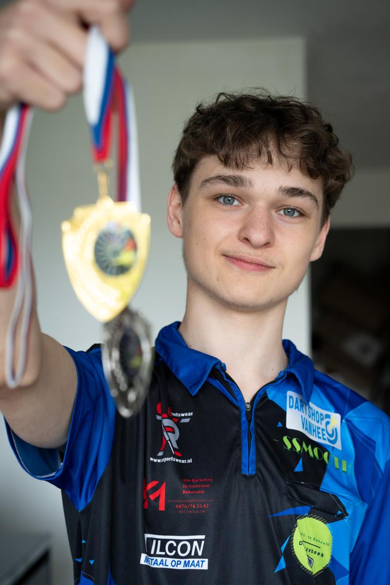 En het ging snel voor onze pijltjesgooier. Zo gaat hij eind november naar het WK darts voor juniores. "Dat klopt. Ik nam deel aan verschillende wedstrijden in ons land en zo pakte ik genoeg punten: samen met Lex Paeshuyse, Ilyano Snoeys en Vince Kenis zit ik in de A-ploeg. Hoe dit allemaal begon? Goede vraag. Ik startte met lokale toernooitjes en omdat ik vaak speelde tegen volwassen mannen, leerde ik snel bij. Een vriend adviseerde mijn mama om me in te schrijven bij de JDC… Dat bleek een worp in de roos, want de voorbije 2 seizoenen verliepen supergoed met mooie resultaten en enkele topervaringen. Zoals mijn overwinning in de Slovenia Masters Youth vorig jaar. Ook leuk: ik werd gekozen (uit 240 kandidaten) voor de VTM Next Gen Darts Academy. Een talentenjacht voor darters."