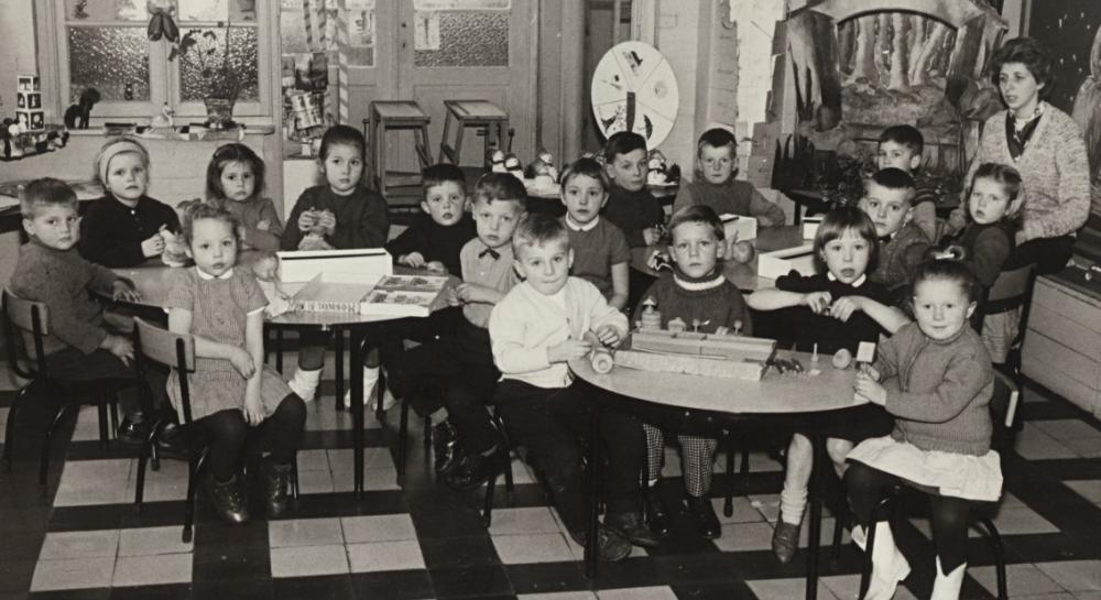 Het is september. Dat betekent: terug naar school. In ons archief vonden we een groepsfoto van de kleuterklasjes van de Rijksbasisschool. En niet de 'Rijkslageschool' zoals de fotograaf op de foto schreef.