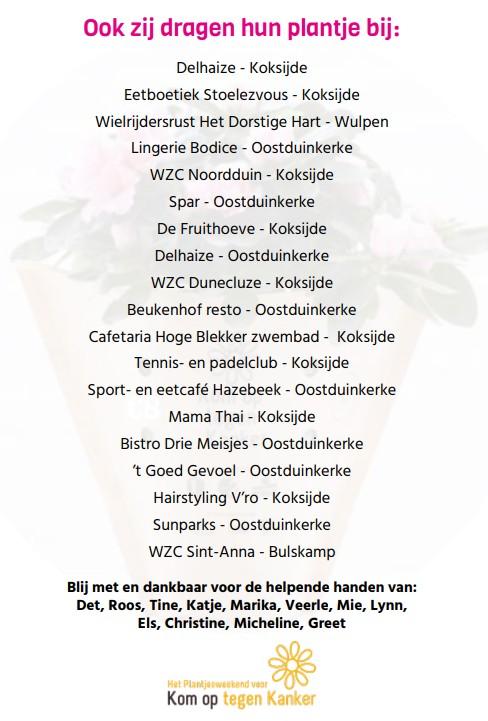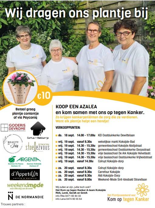 Steun hen en draag je plantje bij op één van de verkooppunten. Misschien kom je Rita, Lena, Gerda of Greta tegen aan de schoolpoort of bij je warenhuis? De organisatie hoopt om 2.300 bloemetjes te verkopen. Je weet dus wat je te doen staat.